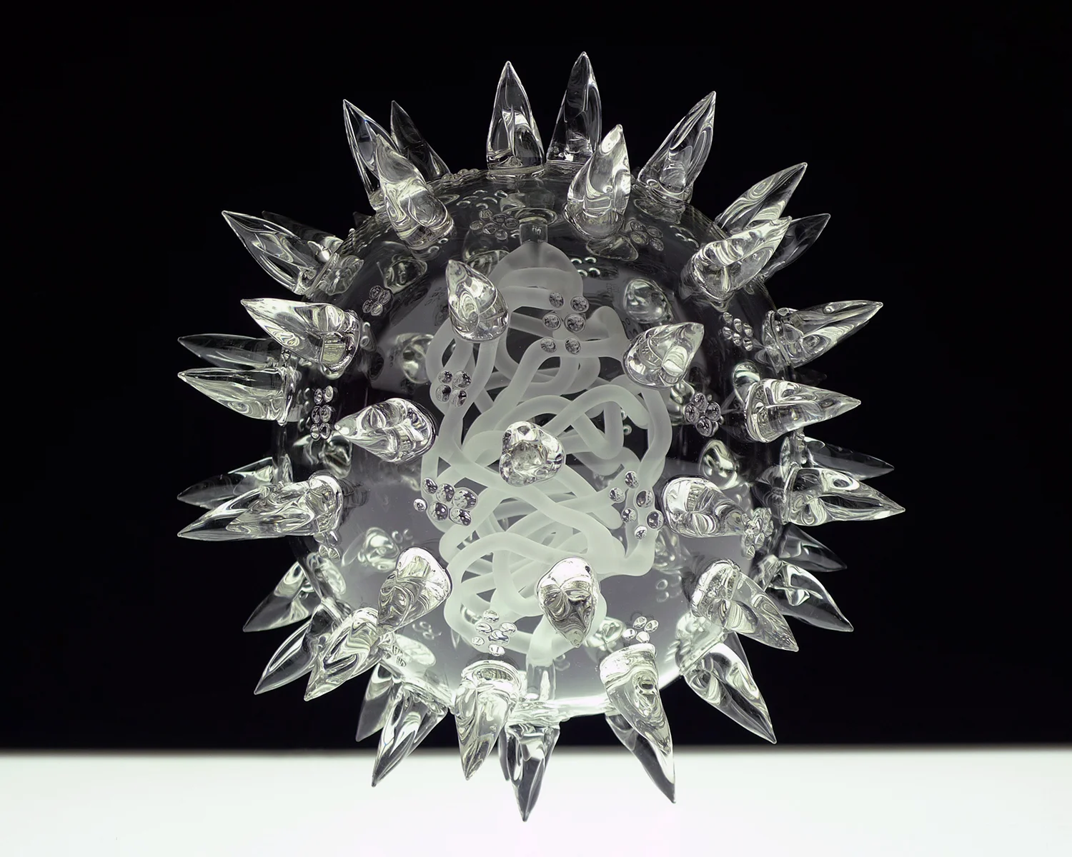 Luke Jerram is an internationally respected multidisciplinary artist, whose practice mines scientific research, ecology, and community building and results in works ranging from discreet objects to large-scale public performances and installations. Jerram teamed up with virologists and scientific glass-makers to create small & elegant models of deadly viruses and bacteria, which are part of his Glass Microbiology series.
