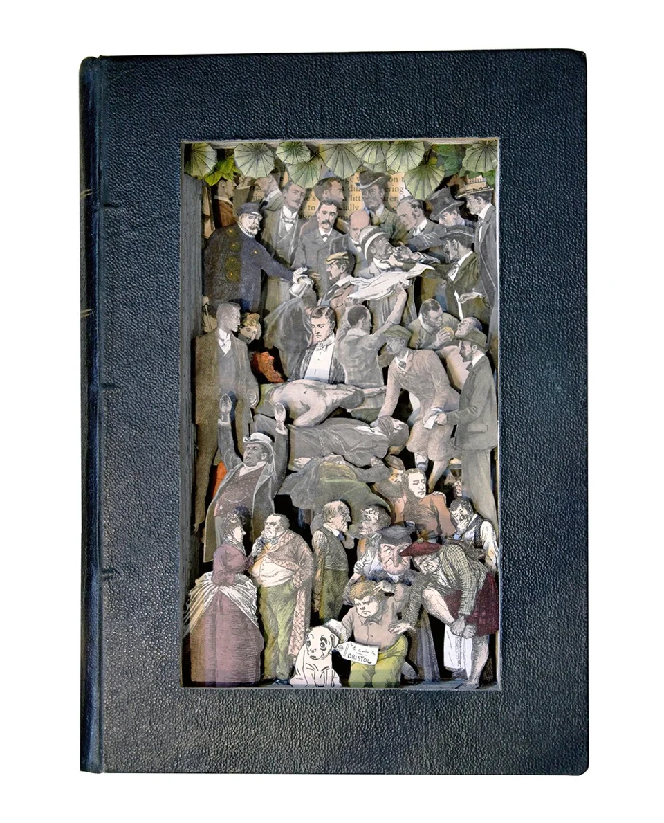 After many years of working in collage and mixed media, Kerry began exploring ways of using old, discarded books, experimenting with deconstructing and rebuilding them to produce unique pieces. Her work is a means of distilling the essence of a book while releasing the images and allowing them to reach a new audience.